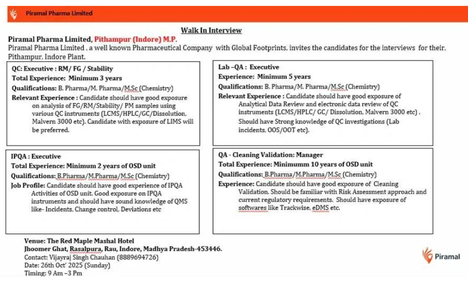 - Pharma Jobs in Piramal Pharma Ltd | Quality Control/ QA/ IPQA Dept. |Apply now