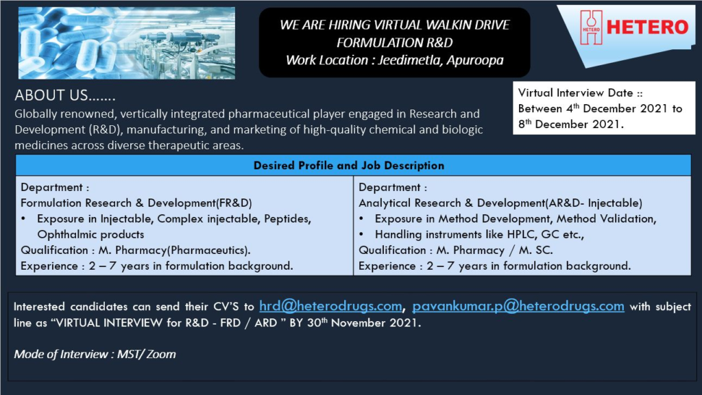 | Official Mail Id | hrd@heterodrugs.com/ pavankumar.p@heterodrugs.com |