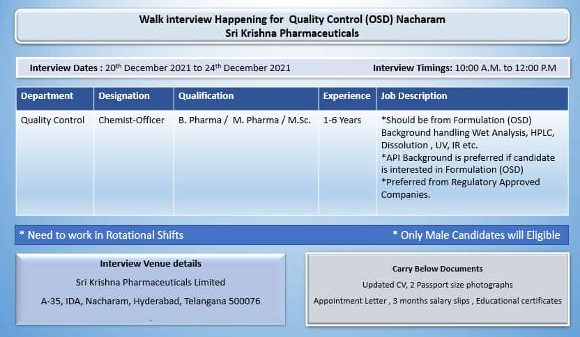- Pharma Jobs in Inventia Healthcare| Quality Control / Production Dept. |Apply now
